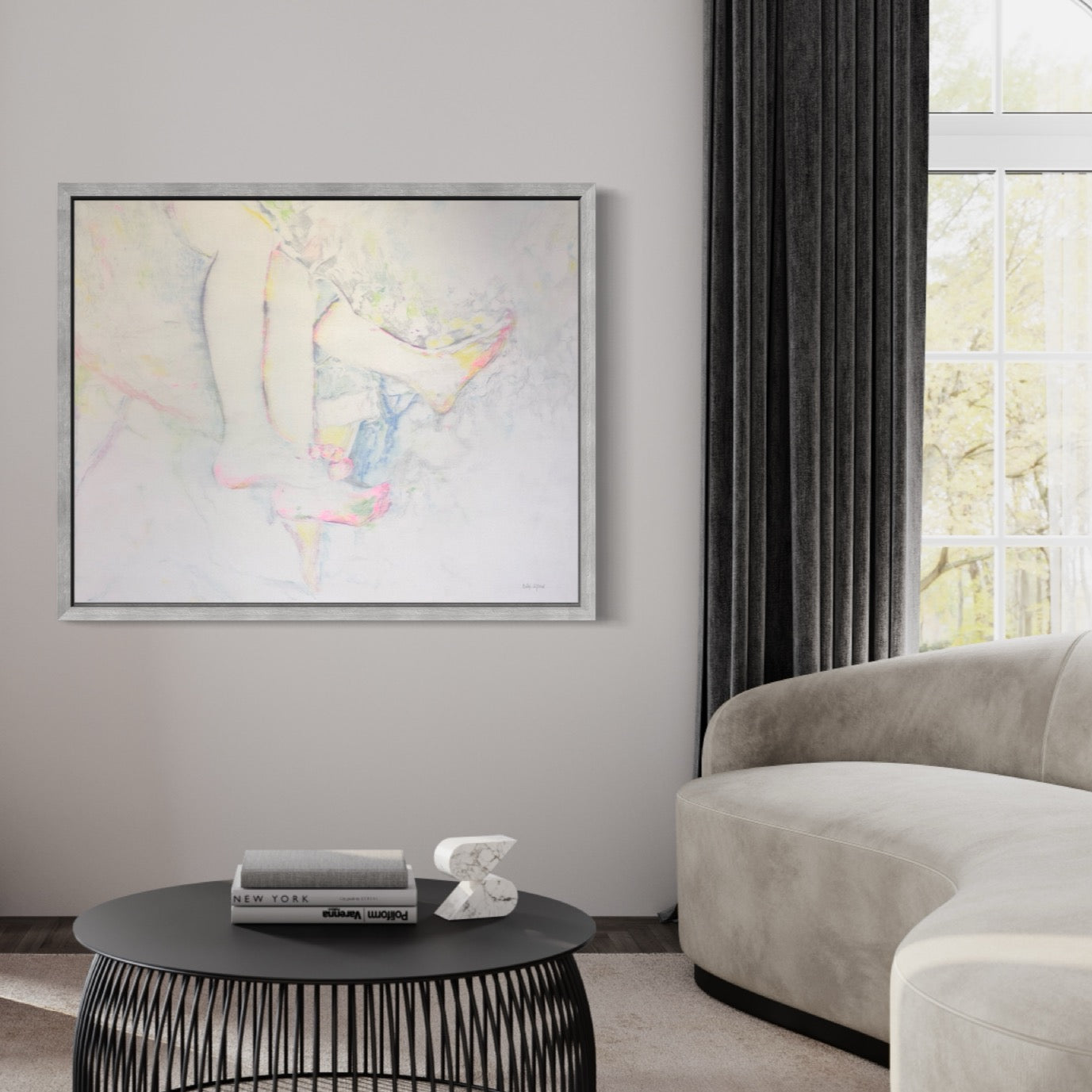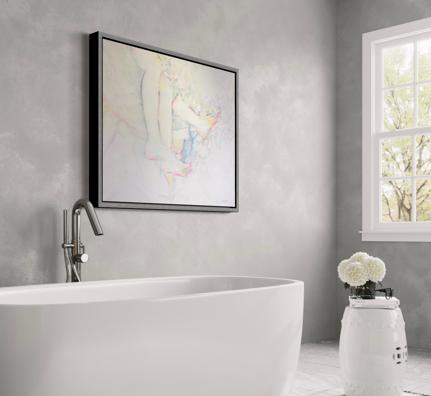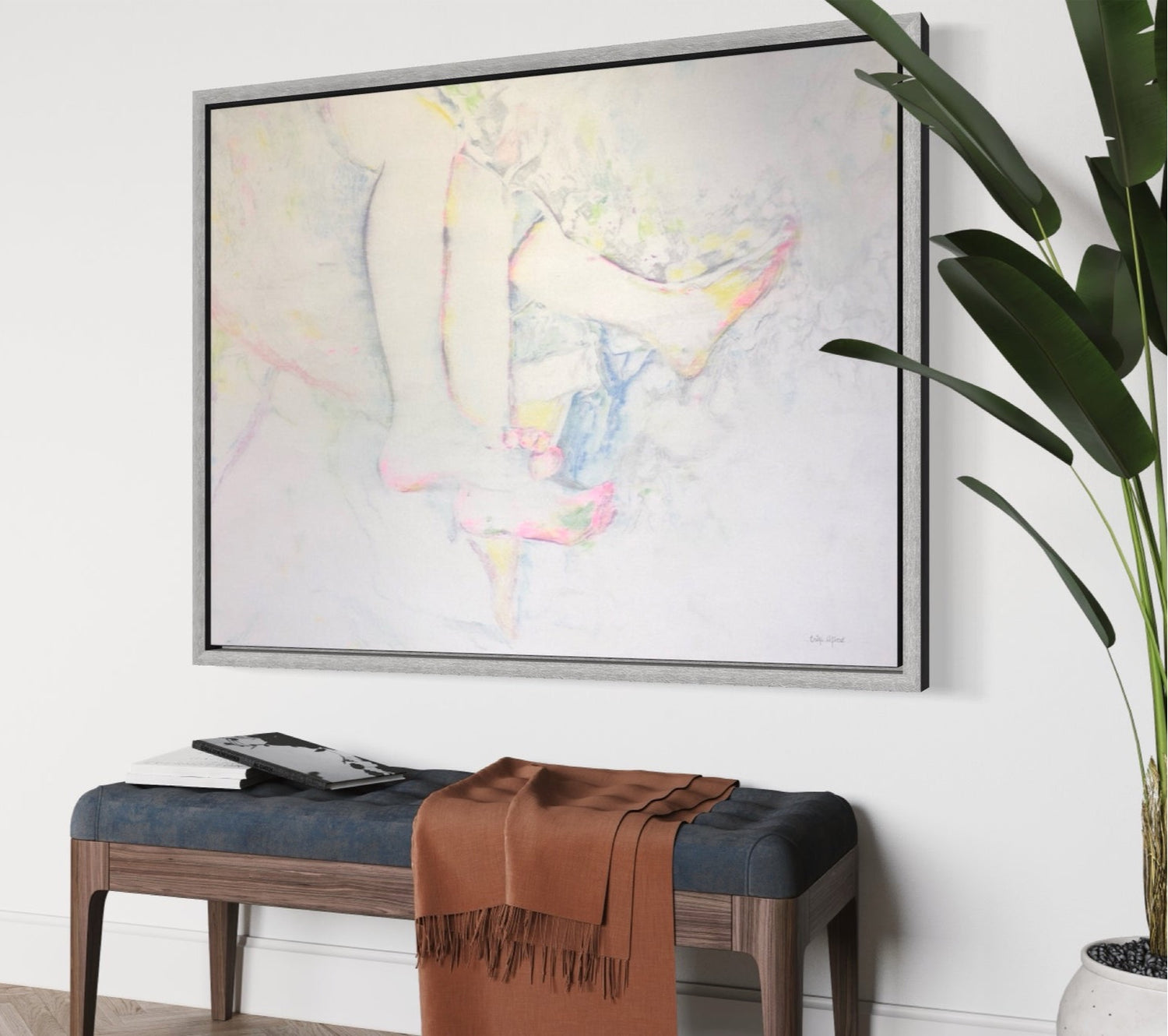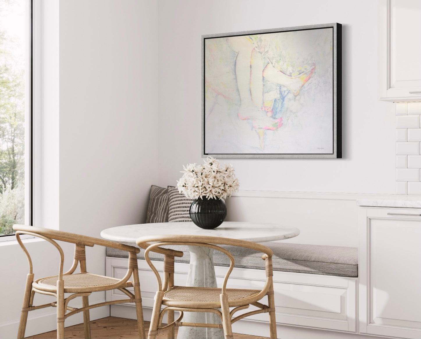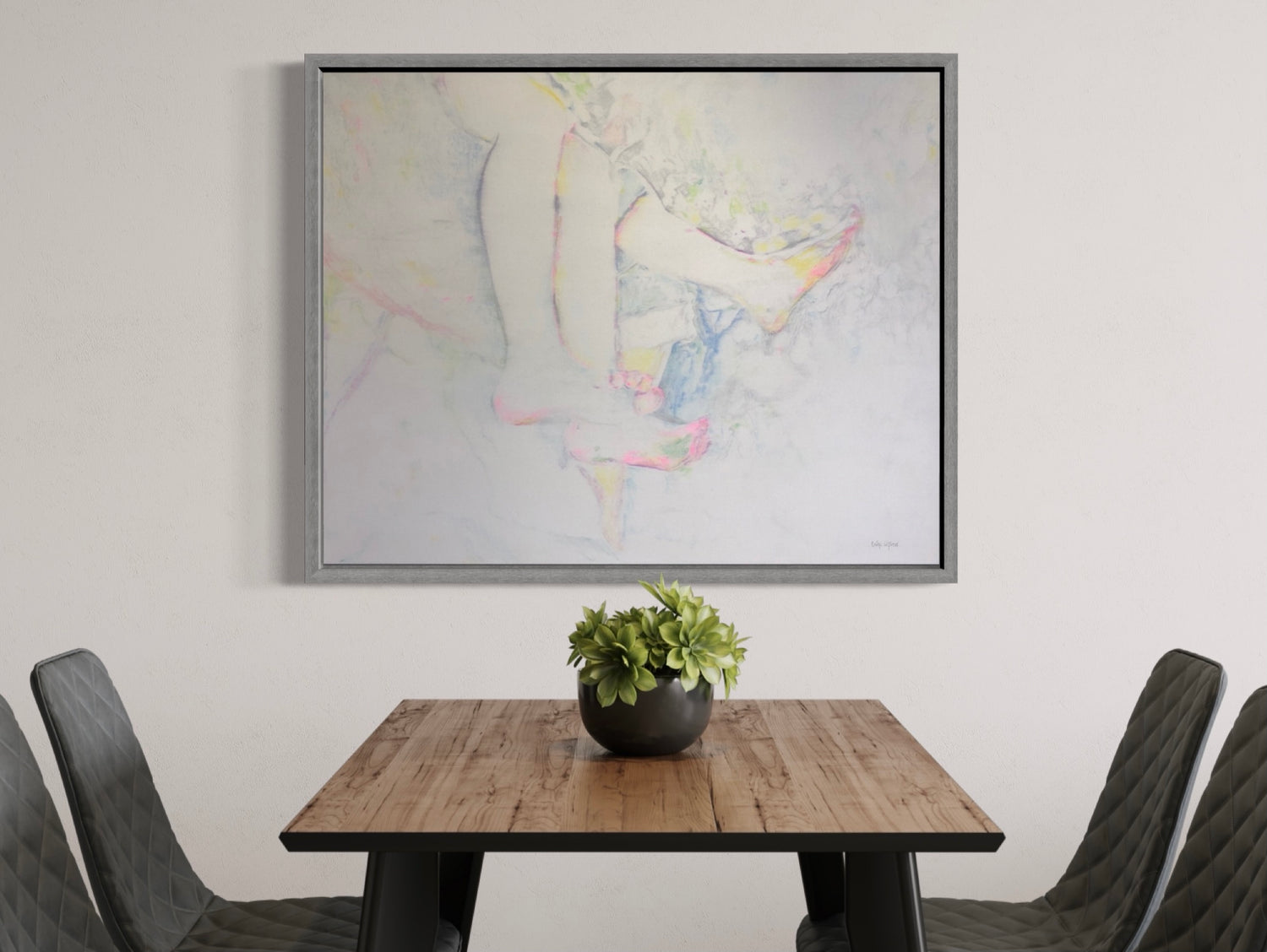 La artista Erika Alfiero emplea su técnica de acuarela vaporizada para difuminar los contornos y permitir que la luz y el color se fundan con suavidad. La atmósfera etérea y casi onírica de la obra transmite la sensación de un tiempo detenido, donde los juegos de la infancia se convierten en refugios emocionales.