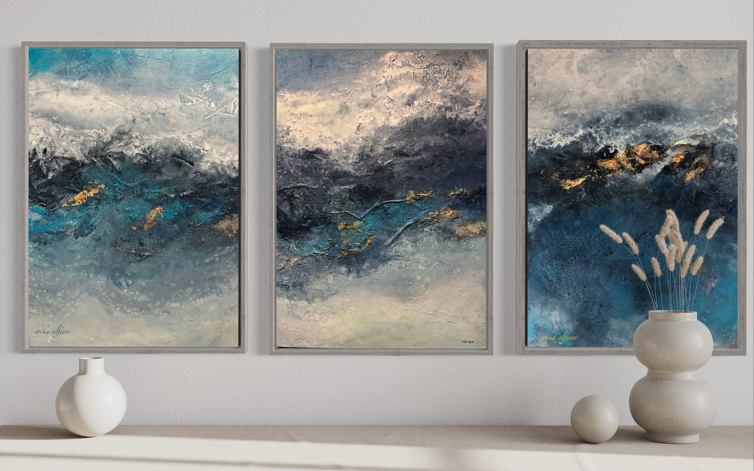 Técnica: Mixta con texturas de arena, hoja de oro, acrílico y óleo